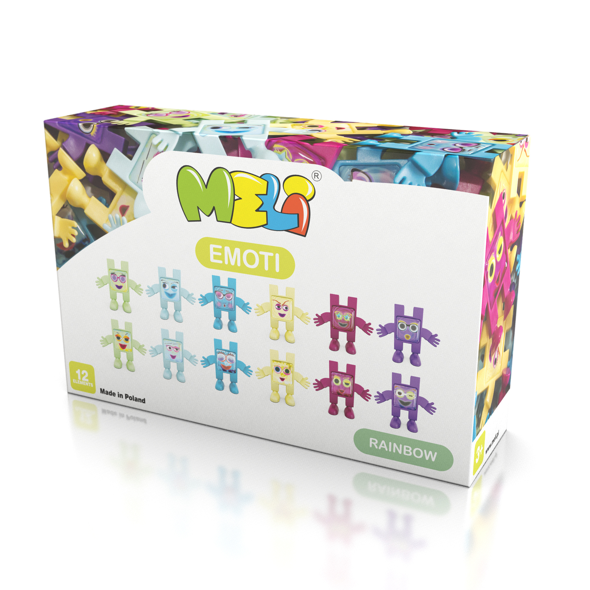 Chcesz pomóc dziecku nawiązywać relacje? Marzysz by nieco je ośmielić i przygotować na kontakty z grupą rówieśników, nauczyć empatii? Dzieci uwielbiają kolekcje Emoti, które poprzez zabawę mogą pomóc w nawiązywaniu nowych znajomości. Komplet kolorowych figurek z zabawnymi buźkami pozwoli na zabawę samodzielnie lub w większej grupie dzieci. Każda z figurek ma inną minkę, a zatem wyraża inny humor, dzięki czemu dzieci mogą aranżować różne scenki. Z pomocą figurek dziecko może odgrywać różne scenki nawiązywania nowych znajomości, organizować spotkania towarzyskie, odtwarzać scenki z życia rodziny, czy też inscenizować zabawy. Figurki postaci wykonane są z tego samego tworzywa co klocki MELI, natomiast buzie to lekko profilowane żelowe naklejki, dające wrażenie trójwymiarowości, które dziecko może samodzielnie nakleić na figurkę. Przyjazne postacie o niewielkich rozmiarach kształtem przypominają znajomą formę klocka MELI, dzięki czemu znakomicie uzupełniają wcześniejsze serie. Figurki, jak i klocki powstały z w pełni przyjaznych materiałów posiadających atest bezpieczeństwa z wykluczeniem substancji szkodliwych. Taka kolekcja zapewni Twoim dzieciom ogromną porcję inspiracji do twórczej zabawy.