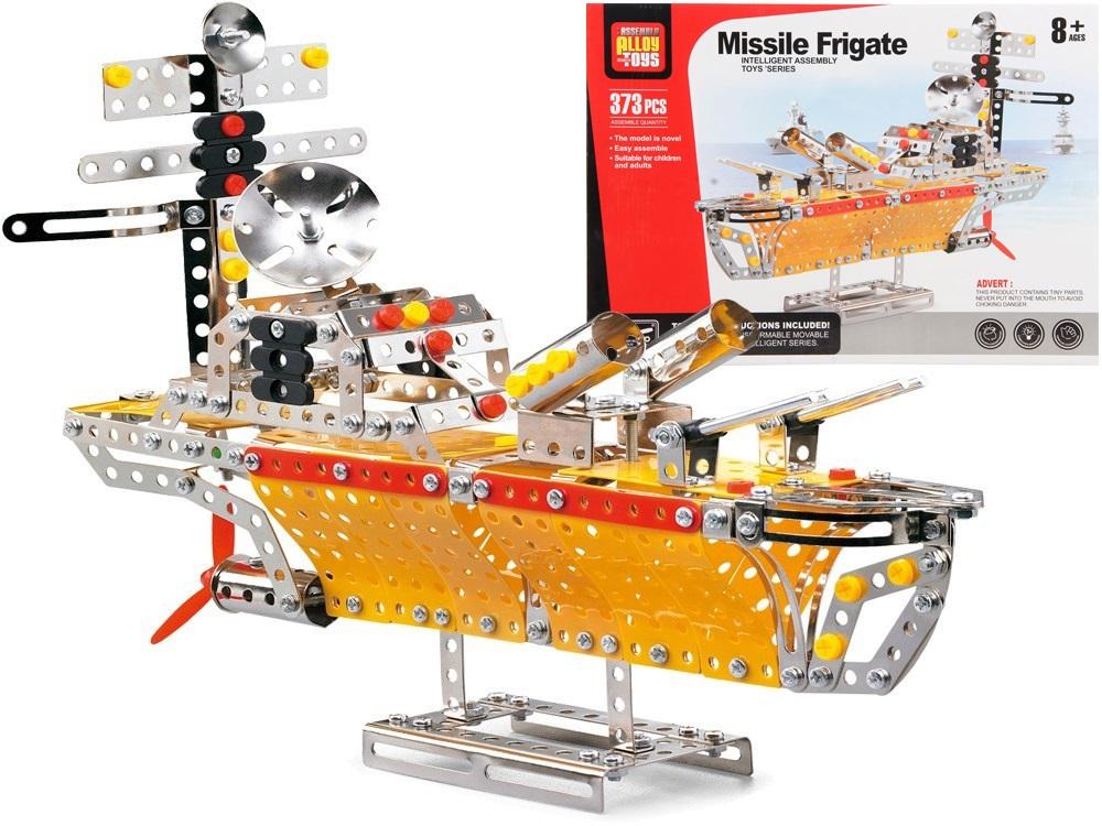 373 elementowy zestaw metalowych klocków z których można zbudować statek.