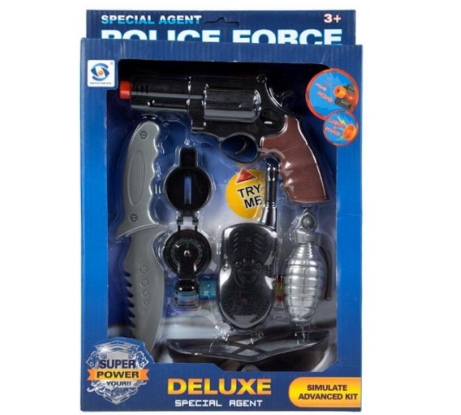 Stój, Policja! Razem z zestawem MEGA CREATIVE łap przestępców. Pokaż odznakę a w razie ucieczki wystrzel ostrzegawczo w niebo! W zestawie znajdują się: pistolet, granat, krótkofalówka, kompas, nóż oraz okulary. Pistolet posiada efekty dźwiękowe - uruchamiane za pomocą nacisku na spust. Zabawki wykonane z plastiku. Produkt przeznaczony dla dzieci w wieku: 3+. Wymaga zasilania bateriami 3 x AG10- załączone do zestawu.