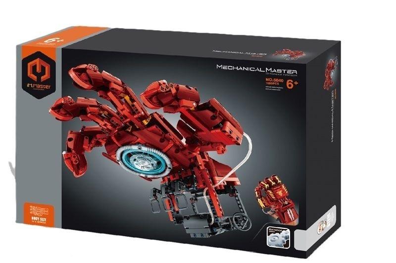 Klocki przedstawiają robotyczną rękę w kolorze czerwonym.