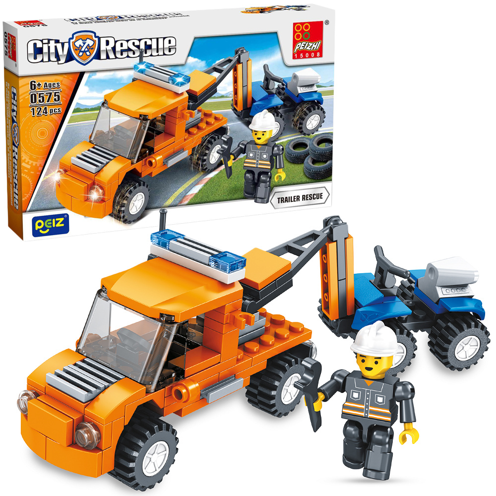 Zestaw Klocków Konstrukcyjnych "City Rescue" - Pomoc Drogowa z Quadem (124 elementy) Wprowadź swoje dziecko w świat heroicznych akcji ratunkowych z zestawem klocków konstrukcyjnych "City Rescue"! Ten ekscytujący zestaw pozwoli małemu konstruktorowi zbudować potężną lawetę z funkcjonalnym ramieniem holowniczym oraz szybki quad, gotowy do każdej misji. Idealny dla dzieci, które uwielbiają pojazdy ratunkowe i kreatywne budowanie. Cechy produktu: Kompletny zestaw ratunkowy: Zawiera wszystkie elementy potrzebne do zbudowania realistycznej, pomarańczowej lawety z niebieskimi światłami ostrzegawczymi oraz niebieskiego quada. Figurka bohatera: W zestawie znajduje się figurka operatora pojazdów ratunkowych w kasku i stroju roboczym, gotowego do akcji. Ruchome elementy: Laweta posiada ruchome ramię holownicze, co zwiększa realizm i możliwości zabawy. Wysoka jakość klocków: Klocki są trwałe, dobrze spasowane i kompatybilne z innymi popularnymi markami klocków konstrukcyjnych. Rozwój umiejętności: Budowanie z klocków rozwija zdolności manualne, kreatywność, logiczne myślenie i wyobraźnię przestrzenną. Dziecko uczy się podążania za instrukcjami, a także eksperymentowania z własnymi pomysłami. Ilość elementów: Zestaw składa się ze 124 elementów, zapewniając odpowiednie wyzwanie i długie godziny zabawy. Wiek: Przeznaczony dla dzieci w wieku 6 lat i starszych. Idealny na prezent: To doskonały pomysł na prezent dla każdego chłopca i dziewczynki, którzy fascynują się pojazdami ratunkowymi, budowaniem z klocków i odgrywaniem scenek. Wielkość opakowania: 27x17x5 cm Pozwól swojemu dziecku na godziny fascynującej zabawy, rozwijając jednocześnie jego umiejętności konstrukcyjne i wyobraźnię! Zestaw "City Rescue" to gwarancja emocjonujących przygód!