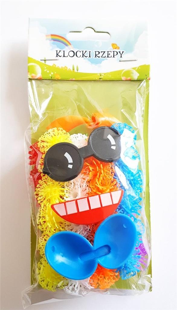 Klocki rzepy to małe okrągłe elementy działające jak rzepy, które połączone ze sobą pozwolą zbudować nieowtarzalne zwierzatka, pojazdy, biżuterię i inne wymyślone przez dzieci postacie oraz przedmioty. W zestawie 48 szt. rzepów oraz dodatki, umożliwiające stworzenie jednej dużej lub kilku malych konstrukcji.