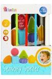 Nieskomplikowana zabawka, która w doskonały sposób zapewnia rozwój zdolności manualnych i motorycznych dziecka- Klocki/ Sensor Sensoryczne Bam Bam. Sześć bajecznie kolorowych, o różnych formach i kształtach geometrycznych klocków, przyciąga uwagę dziecka aktywizując percepcję wzrokowa, uczy rozpoznawania kształtów oraz aktywizuje zmysł dotyku i zdolności manualne. Dodatkowo sześcian, którego ścianki utkane są z kolorowych, elastycznych linek, pełni rolę sortera, do którego bez trudu można wrzucać klocki i przechowywać je tam. Ponowne wyjecie klocków wymaga sporej koncentracji , zaangażowania malucha, uczy wytrwałości gratyfikując włożony wysiłek. Zabawka wpływa pozytywnie na emocje, zapewnia relaks i kreatywną zabawę, pomaga w nauce kolorów oraz kształtów. Zabawka wykonana z najwyższej jakości plastiku, bez ftalanów, zgodna z EN-71 i CE. zapewnia bezpieczną zabawę. Wymiary/waga/baterie: wymiary produktu dł. x wys. x gł. cm : 12x12x12, wymiary opakowania dł. x wys. x gł. cm : 13x18x13, waga produktu bez opakowania kg : 0,21 kg, waga produktu w opakowaniu kg : 0,29 kg, nie wymaga zasilania bateriami. Zabawka przeznaczona dla dzieci w wieku: 12m . Pakowana w kartonik z otwartym okienkiem.
