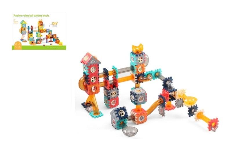 Kolorowe klocki z przeszkodami. W zestawie dołączono także kolorowe piłeczki i zjeżdżalnie dla urozmaicenia budowy. Produkt składa się z 226 klocków. Produkt zapakowany w kartonowe opakowanie Podane wymiary są wymiarami opakowania. Produkt dla dzieci od 3 lat.