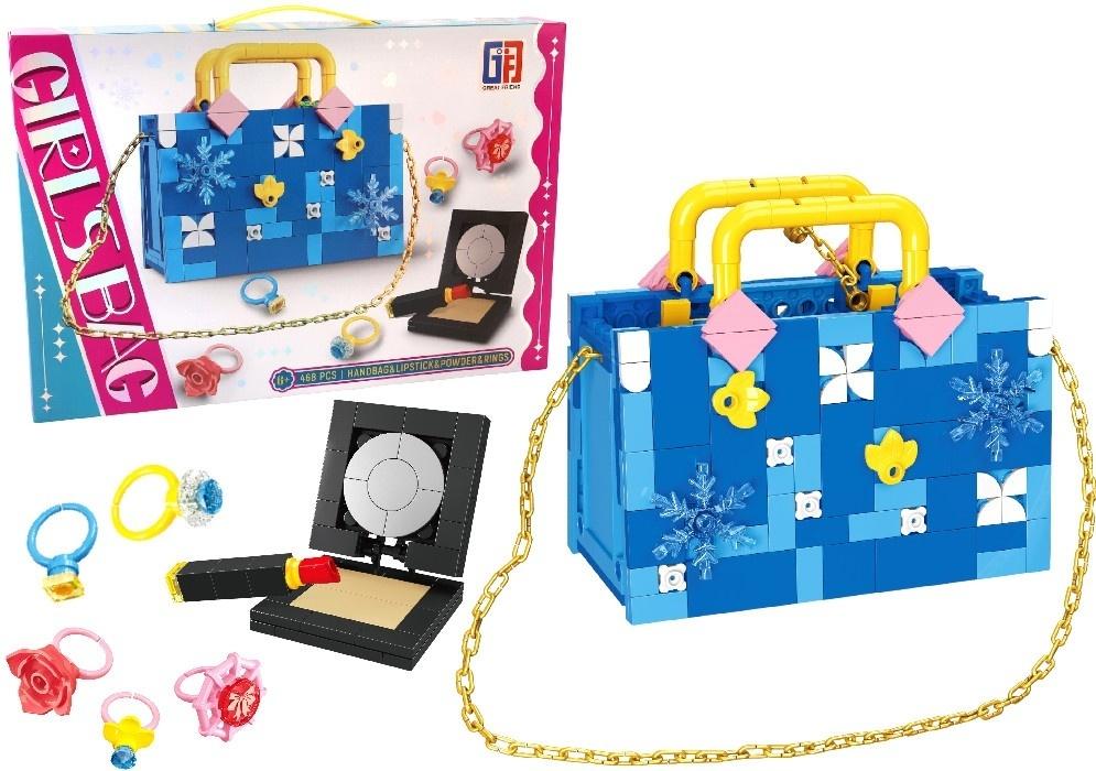 Zestaw Klocki Torebka z Akcesoriami to pełna elegancji propozycja dla dzieci, które lubią błysk, kreatywność i własny styl. Inspirowana światem mody torebka w odcieniach błękitu, różu i żółci pozwala zbudować z klocków wyjątkowy dodatek stylową mini torebkę z ruchomym złotym łańcuszkiem, ozdobioną śnieżynkami, kwiatkami i pastelowymi elementami.