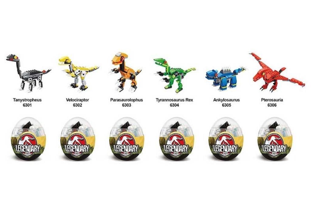Klocki do składania w jajku - Dino 9 cm. Opakowanie zbiorcze zawiera 12 sztuk. Mix wzorów.