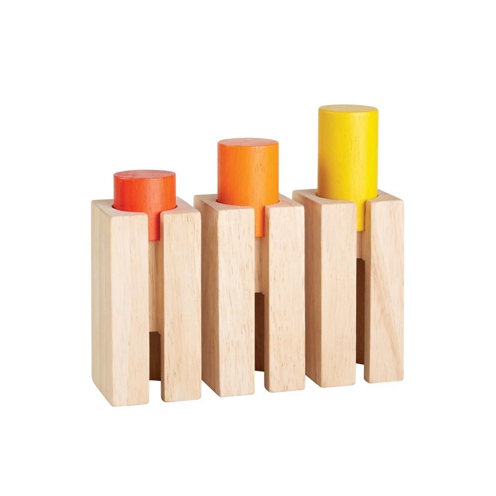 Zestaw składa się z 6 drewnianych klocków, które są świetnym sposobem na zapoznanie dziecka z porównaniem i pomiarem wielkości przedmiotów. Zestaw odpowiedni dla dzieci w wieku 18 miesięcy i starszych.