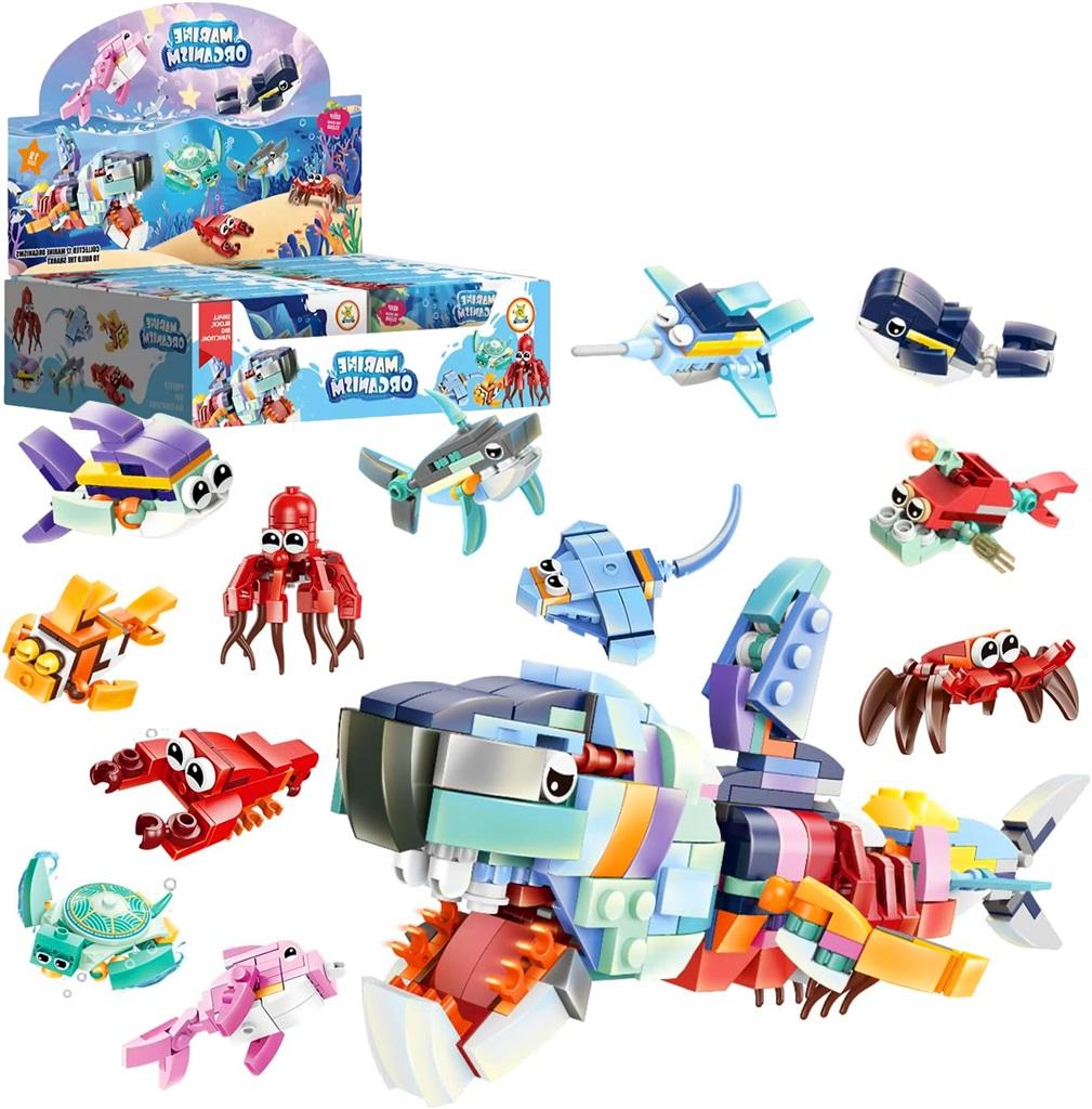Klocki zwierzęta morskie. W każdym zestawie znajduje się ponad 20 klocków.