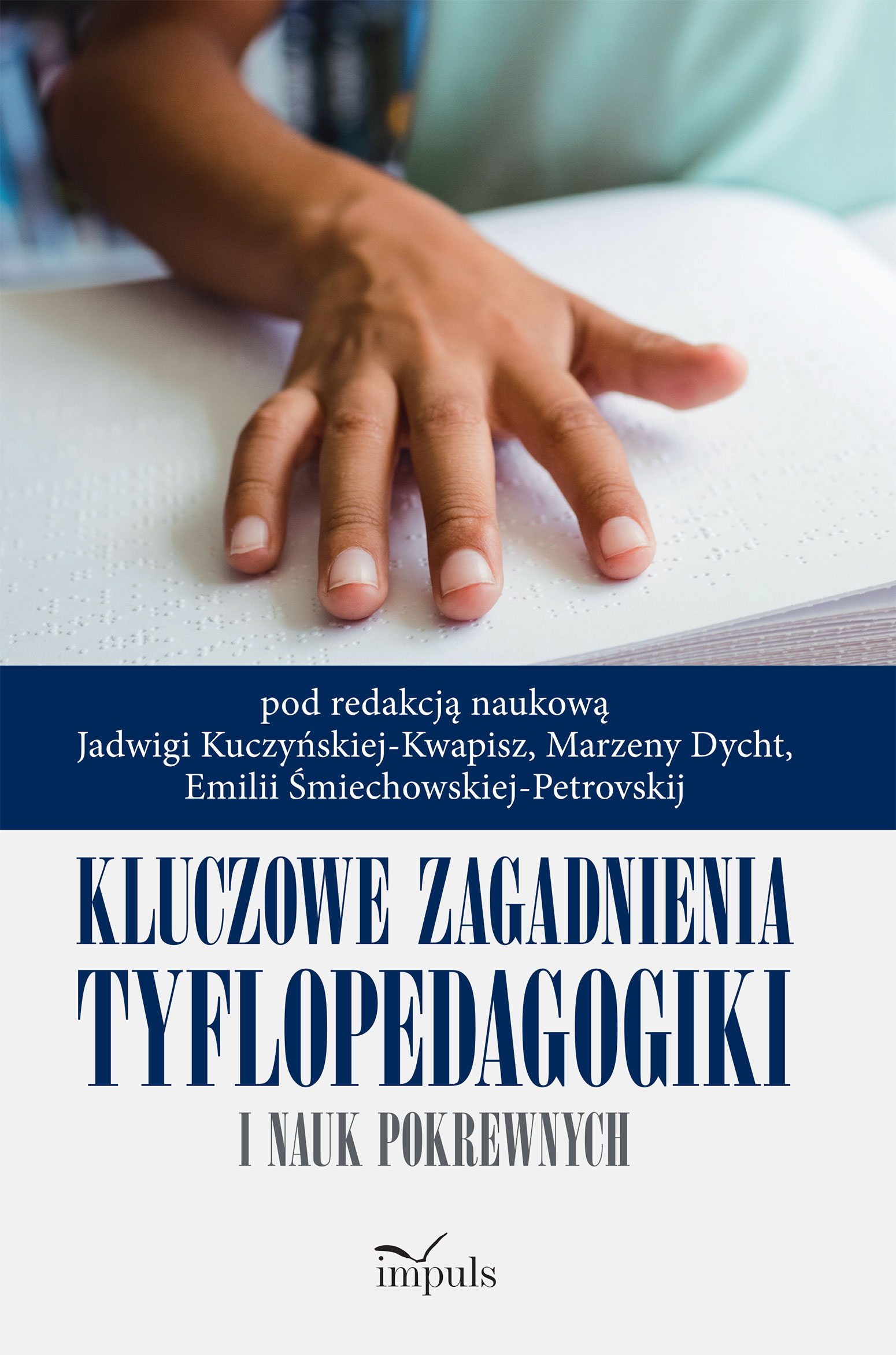 Publikacja Kluczowe zagadnienia tyflopedagogiki i nauk pokrewnych pod redakcją naukową badaczek z Katedry Pedagogiki Specjalnej Wydziału Nauk Pedagogicznych Uniwersytetu Kardynała Stefana Wyszyńskiego w Warszawie: prof. Jadwigi Kuczyńskiej Kwapisz, dr hab. Marzeny Dycht, prof. UKSW oraz dr Emilii Śmiechowskiej-Petrovskij zawiera przegląd najnowszych badań i praktyk tyflopedagogicznych, a także rozważania teoretyczne pedagogów i okulistów. Książka może służyć zarówno badaczom zajmującym się pedagogiką specjalną, jak i nauczycielom, wychowawcom, terapeutom, specjalistom z zakresu orientacji przestrzennej i rehabilitacji wzroku oraz studentom, szczególnie pedagogiki i pedagogiki specjalnej.