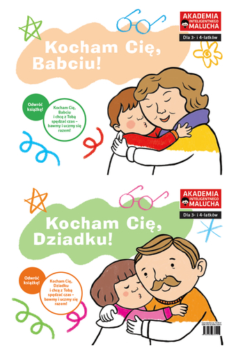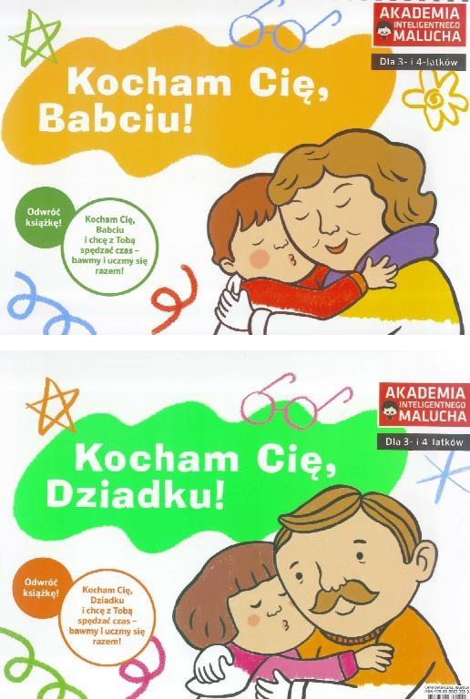 Kocham Cię Babciu / Kocham Cię Dziadku Droga Babciu, Drogi Dziadku! Oferujemy Tobie i Twoim wnukom praktyczną książkę z ćwiczeniami, która pozwoli Ci mądrze i mile spędzić czas z dziećmi Twoich dzieci. W zależności, z której strony rozpoczniesz jej lekturę, będzie ona Twoim przewodnikiem zabaw z dzieckiem i porad dotyczących relacji dziecka z babcią lub dziadkiem. Z czasem może stać się pamiątką wspólnych zabaw, a zachowana w domowej biblioteczce – stać się wspaniałym pamiętnikiem z dzieciństwa, przypominającym dziecku, co przeżyliście i umacniającą waszą więź. Dzięki sugestiom podanym na dole każdej strony, książka ta pomoże ci lepiej wykorzystać czas, który spędzisz z dzieckiem – stworzy okazję do ciekawych zabaw, które rozwiną jego potencjał, obojgu wam dadzą radość bycia ze sobą. Wtedy zapewne nie raz usłyszysz “kocham cię, babciu”, “kocham cię, dziadku”.