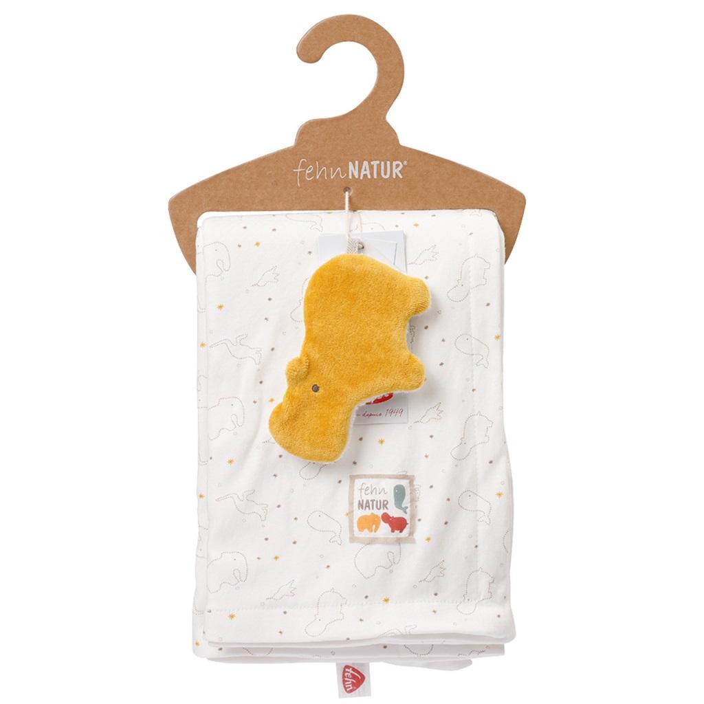 Delikatny w dotyku, miękki kocyk z dżerseju będzie pełnił rolę najlepszego przyjaciela, pocieszyciela, bratniej duszy i opiekuna. Można go używać jako dywanik, podkładkę do raczkowania, okrycie lub wyściółkę do łóżeczka, kojca, nosidełka czy wózka. Twoje dziecko będzie czuć się komfortowo i bezpiecznie. Wykonany z najwyższej jakości materiału daje się zrolować w zgrabny pakunek. Do kocyka dołączony jest mały, szeleszczący Hipopotam, który trenuje zmysły dziecka. Może się stać idealnym towarzyszem zabaw.