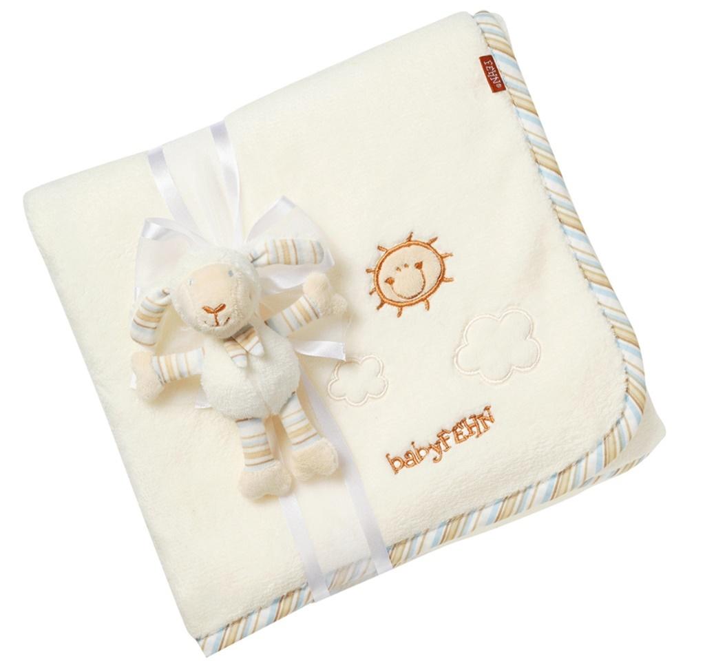 Kocyk z maskotką, Owieczka, z kolekcji: Kochaj Mnie. Delikatny w dotyku, ozdobiony maskotką Owieczki, będzie pełnił rolę najlepszego przyjaciela, pocieszyciela, bratniej duszy i opiekuna. Można go używać jako przytulankę, dywanik lub okrycie. Twoje dziecko będzie czuć się komfortowo i bezpiecznie. Wykonany z najwyższej jakości materiału daje się złożyć w zgrabny pakunek, dzięki temu może być doskonałym towarzyszem w domu lub w podróży. Delikatny w dotyku. Miękki, przewiewny i trwały. Na czas podróży można zrolować w zgrabny pakunek. Można prać. Rozmiar: Kocyk: 100 x 75 cm, Maskotka: 13 cm. Wszystkie zabawki niemieckiej marki FEHN są bezpieczne dla dzieci od 0 lat. Wykonane są z najlepszej jakości materiałów. Spełniają normy EN71, CE, badane w instytutach ""Stiftung Warentest"" lub ""kotest.