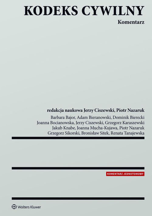 Wykorzystując najnowszy dorobek doktryny i orzecznictwa, w jednotomowym opracowaniu przedstawiono autorski komentarz do wszystkich przepisów kodeksu cywilnego.