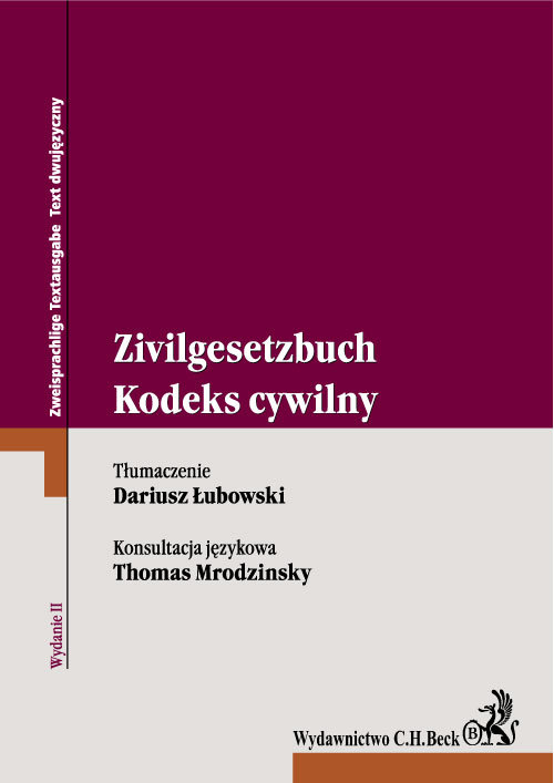 Książka jest drugim wydaniem tłumaczenia Kodeksu cywilnego na język niemiecki. Autor tłumaczenia, s. Dariusz Łubowski, jest czynnym sędzią Sądu Okręgowego w Warszawie, wieloletnim współpracownikiem Departamentu Współpracy Międzynarodowej i Prawa Europejskiego Ministerstwa Sprawiedliwości i ekspertem w zakresie tłumaczeń prawniczych z języka niemieckiego i polskiego dla Trybunału Sprawiedliwości Unii Europejskiej w Luksemburgu. Tłumaczenie zostało dodatkowo zweryfikowane przez s. Thomasa Mrodzinsky’ego (sędziego Sądu Krajowego w Chemnitz w Niemczech), będącego od wielu lat odpowiedzialnym za współpracę polskiego i niemieckiego wymiaru sprawiedliwości. Publikacja odzwierciedla stan prawny na dzień 1 września 2017 roku.