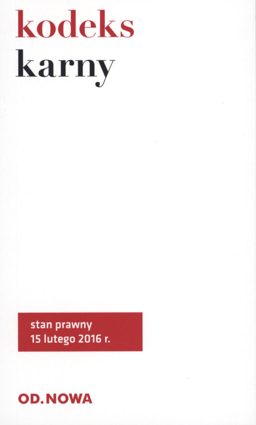 Najnowsza aktualizacja kodeksu karnego uwzględniająca wszystkie zmiany prawne, jakie weszły w życie 1 lipca 2015 r oraz kolejne zmiany uchwalone w 2016 r. Publikacja zawiera tekst jednolity ustawy wraz z przepisami wprowadzającymi. Ujmuje stan prawny po naniesieniu fundamentalnych zmian związanych z tzw. nową filozofią karania. Zaletą książki jest jej praktyczny, poręczny format, przejrzysty układ graficzny i niska cena. Łatwą orientację w materiale umożliwia obszerny skorowidz. Stan prawny: 15 lutego 2016 r.