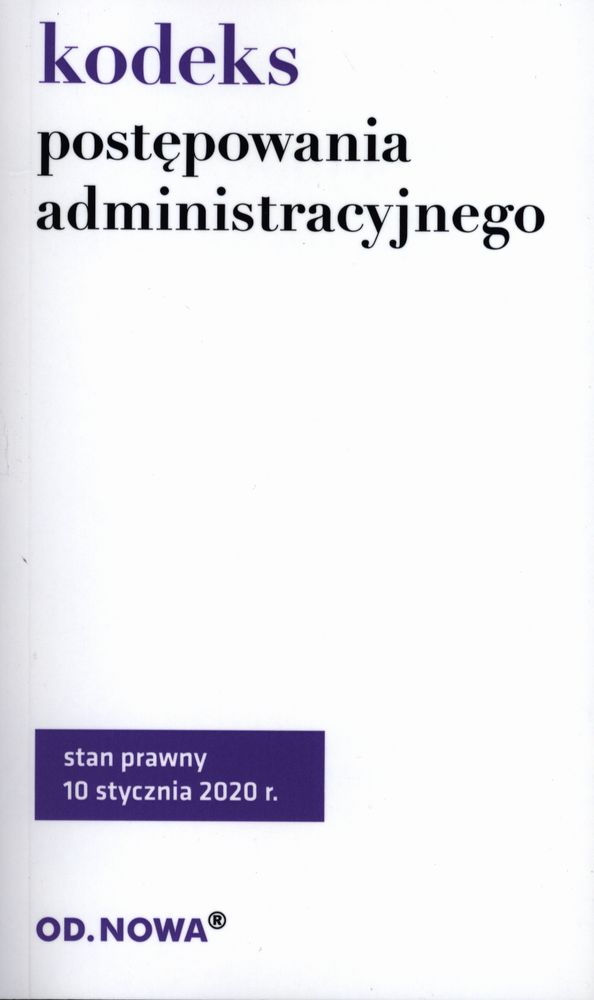 Wybierając publikacje Wydawnictwa Od.Nowa masz pewność, że otrzymane treści są w pełni aktualne kolejne wydania poszczególnych kodeksów i aktów prawnych skrupulatnie odnotowują wszelkie zmiany przepisów. Nie inaczej jest w przypadku najnowszej aktualizacji Kodeksu postępowania administracyjnego: publikacja dokumentuje stan prawny na 17 września 2019 r. Ryzyko pomyłki wykluczone!