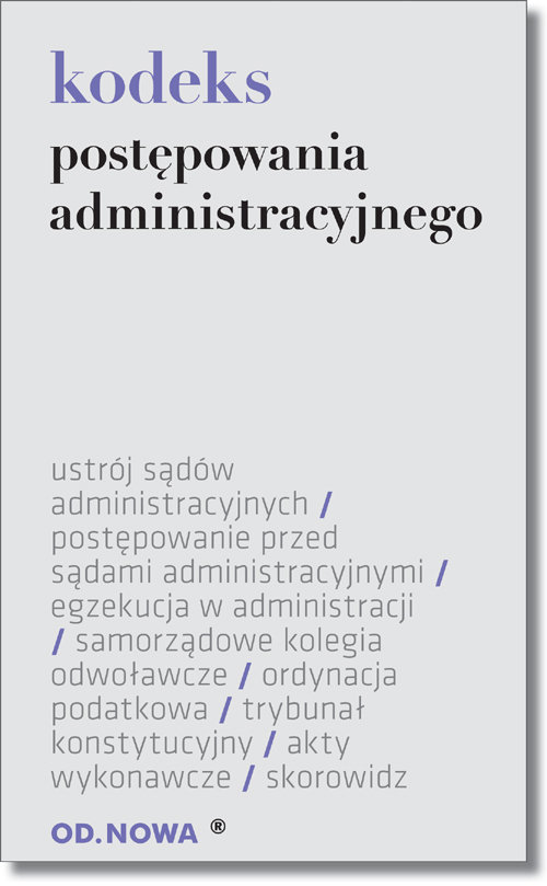 Ponad 600-stronicowy zbiór ustaw i rozporządzeń dotyczących postępowania administracyjnego. Oprócz najbardziej istotnego dla tej tematyki, kodeksu postępowania administracyjnego, w zbiorze zawarto również przepisy dotyczące sądów administracyjnych i egzekucji administracyjnej, a w tym: prawo o ustroju sądów administracyjnych, prawo o postępowaniu przed sądami administracyjnymi oraz ustawę o postępowaniu egzekucyjnym w administracji. Uwzględniono obszerną nowelizację postępowania sądowoadministracyjnego, dokonaną w 2015 r. Dodatkowo tom zawiera najważniejsze przepisy prawa podatkowego (m.in. Ordynacja podatkowa), ustawę o samorządowych kolegiach odwoławczych, ustawę o Trybunale Konstytucyjnym w nowym brzmieniu, a także ustawę o petycjach jako nowy element systemu prawa administracyjnego w Polsce. Większość ustaw wyposażona jest w komplet rozporządzeń. Stan prawny: 1 września 2016 r.
