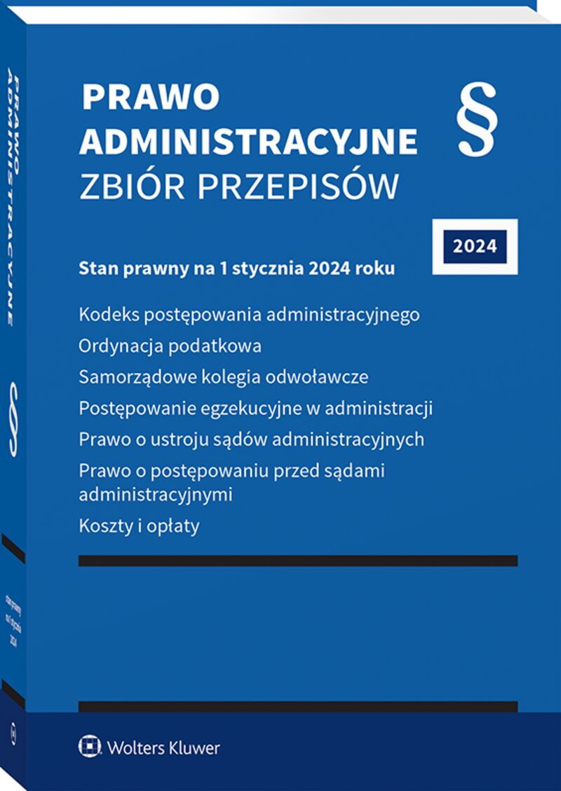 Stan prawny: 4 stycznia 2024r. Praktyczny zbiór najważniejszych aktów prawnych z zakresu prawa administracyjnego. Zawiera informacje o uwzględnionych zmianach. Zastosowany system oznaczania nowych przepisów znacznie ułatwia codzienną pracę prawnika. Skorowidze do ustaw i tytuliki towarzyszące poszczególnym artykułom, poręczny format, miękka oprawa to dodatkowe atuty książki. Najważniejsze zmiany dotyczą m.in.: usprawnienia działań wierzyciela i organu egzekucyjnego w zakresie niezbędnym do wszczęcia i prowadzenia egzekucji administracyjnej, możliwości skutecznego zrzeczenia się przez stronę prawa do wniesienia odwołania od decyzji; usprawnień w zakresie niezbędnym do wszczęcia i prowadzenia egzekucji administracyjnej; e-doręczeń. Zbiór obejmuje zmiany wynikające z ustaw opublikowanych do 4 stycznia 2024 r., w tym m.in.: Ordynacja podatkowa: • ustawa z 9 marca 2023 r. o zmianie ustawy o postępowaniu egzekucyjnym w administracji oraz niektórych innych ustaw (Dz.U. poz. 556) • ustawa z 26 maja 2023 r. o zmianie ustawy o autostradach płatnych oraz o Krajowym Funduszu Drogowym oraz niektórych innych ustaw (Dz.U. poz. 1193) • ustawa z 16 sierpnia 2023 r. o zmianie ustawy o szczególnych rozwiązaniach służących ochronie odbiorców energii elektrycznej w 2023 roku w związku z sytuacją na rynku energii elektrycznej oraz niektórych innych ustaw (Dz.U. poz. 1785) Postępowanie egzekucyjne w administracji: • ustawa z 9 marca 2023 r. o zmianie ustawy o postępowaniu egzekucyjnym w administracji oraz niektórych innych ustaw (Dz.U. poz. 556) • ustawa z 28 lipca 2023 r. o zmianie ustawy – Prawo energetyczne oraz niektórych innych ustaw (Dz.U. poz. 1681) Prawo o ustroju sądów administracyjnych: • ustawa z 28 lipca 2023 r. o zmianie ustawy – Kodeks cywilny oraz niektórych innych ustaw (Dz.U. poz. 1615) Prawo o postępowaniu przed sądami administracyjnymi: • ustawa z 7 lipca 2023 r. o zmianie ustawy – Kodeks postępowania cywilnego, ustawy – Prawo o ustroju sądów powszechnych, ustawy – Kodeks postępowania karnego oraz niektórych innych ustaw (Dz.U. poz. 1860) • ustawa z 16 sierpnia 2023 r. o zmianie ustawy – Kodeks spółek handlowych oraz niektórych innych ustaw (Dz.U. poz. 1705) Wykaz wszystkich zmian zamieszczono przed spisem treści.