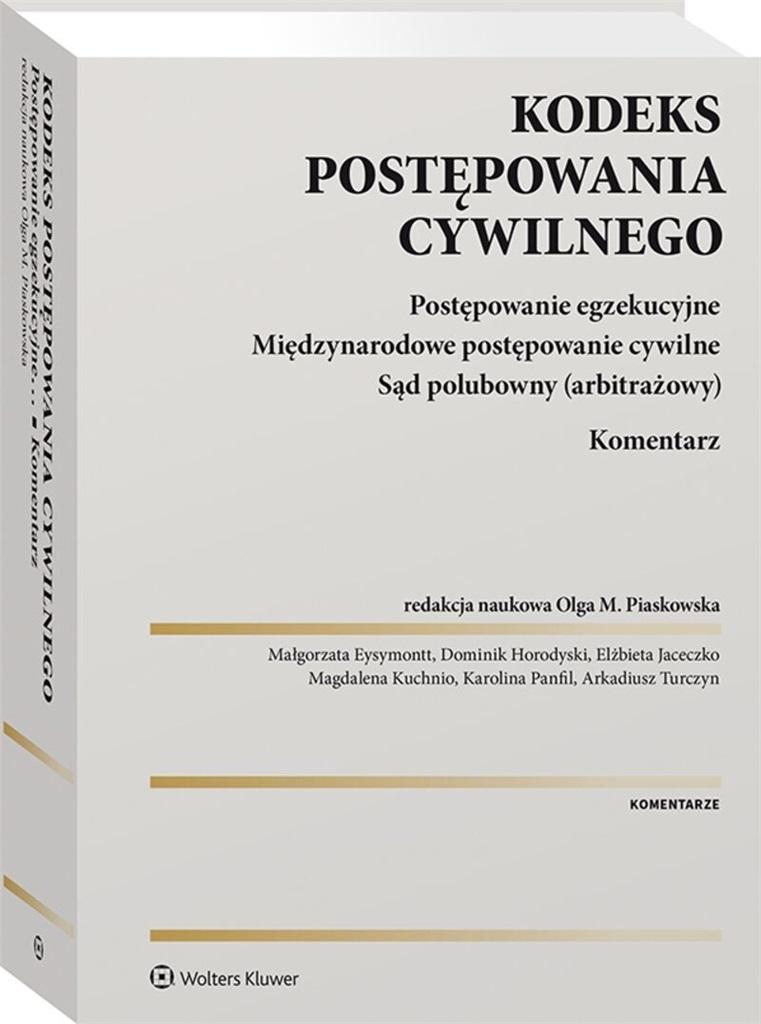 Stan prawny: 1 lipca 2022 r., z uwzględnieniem zmian wchodzących w życie z dniem 1 września 2022 r. Komentarz napisany przez praktyków i z myślą o praktykach w sposób kompleksowy omawia postępowanie egzekucyjne, międzynarodowe postępowanie cywilne oraz postępowanie arbitrażowe, tj. przepisy części trzeciej, czwartej i piątej Kodeksu postępowania cywilnego. Uwzględnia wszystkie nowelizacje, które do 1.07.2022 r. zostały implementowane do przepisów Kodeksu w zakresie, w jakim odnoszą się do komentowanych regulacji, choć odnosi się także do zmian wchodzących w życie z dniem 1.09.2022 r. Dotyczą one m.in. rozszerzenia zakresu przedmiotów niepodlegających egzekucji sądowej, zajęcia nadpłaty i zwrotu podatku. W publikacji w przystępny sposób wyjaśniono zasady stosowania przepisów zarówno nowych, jak i tych niezmienionych, ze wskazaniem konkretnych rozwiązań kwestii powodujących problemy w praktyce. Autorzy uwzględnili obszerny przegląd orzecznictwa oraz szereg użytecznych uwag, konstrukcje teoretyczne omawiając jedynie w niezbędnym zakresie. Książka jest przeznaczona przede wszystkim dla sędziów, komorników, adwokatów, radców prawnych i referendarzy sądowych.
