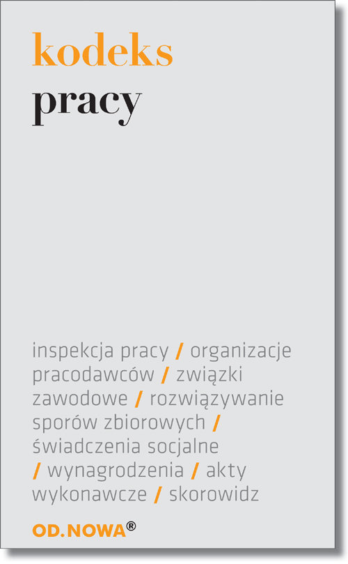 Kompletny zbiór aktów prawnych, pozwalający zarówno dydaktykom jak i osobom zajmującym się praktycznym stosowaniem lub egzekwowaniem prawa pracy, poznać aktualne brzmienie przepisów. Jest to szczególnie istotne zważywszy na wyjątkowo częste zmiany stanu prawnego w tej dziedzinie. Obok kodeksu pracy, uzupełnionego o najważniejsze rozporządzenia, w zbiorze zamieszczono szereg innych aktów prawnych dotyczących tej gałęzi ustawodawstwa. Znajdziemy w nim przepisy normujące zbiorowe prawo pracy, a także m.in. ustawę o minimalnym wynagrodzeniu za pracę, o dniach wolnych od pracy, o Państwowej Inspekcji Pracy. Ostatnie zmiany opatrzone są przypisami, a wchodzące w życie w przyszłości zamieszczone są w ramkach. Szczegółowy skorowidz odnoszący się do Kodeksu pracy ułatwia korzystanie ze zbioru. Stan prawny: 23 styczeń 2017r.