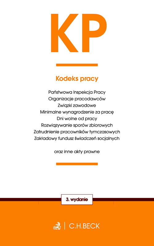 Stan prawny: 1 września 2016 r. Zawiera zmiany wchodzące w życie 3.08.2016 .r (Dz.U. z 2016 r. poz. 1053) oraz 1.09.2016 r. (Dz.U. z 2016 r. poz. 910). Publikacja zawiera: Kodeks pracy Państwowa Inspekcja Pracy Organizacje pracodawców Związki zawodowe Minimalne wynagrodzenie za pracę Dni wolne od pracy Rozwiązywanie sporów zbiorowych Zatrudnienie pracowników tymczasowych Zakładowy fundusz świadczeń socjalnych oraz inne akty prawne Książka zawiera zbiór najważniejszych ustaw z prawa pracy. Adresowana jest do prawników oraz studentów prawa, dla których znajomość obowiazujacych przepisów stanowi warunek prawidłowego wykonywania zawodu. Kolejne wydania publikacji uwzglądniają najnowsze zmiany, przez co zapewniają bieżącą znajomość prawa.