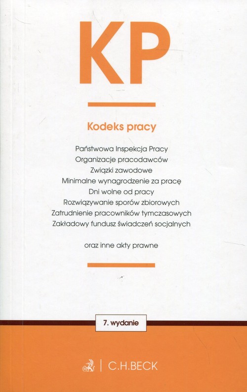 Stan prawny: 1 września 2018 r. Publikacja zawiera: Kodeks pracy Państwowa Inspekcja Pracy Organizacje pracodawców Związki zawodowe Minimalne wynagrodzenie za pracę Dni wolne od pracy Rozwiązywanie sporów zbiorowych Zatrudnienie pracowników tymczasowych Zakładowy fundusz świadczeń socjalnych oraz inne akty prawne Książka zawiera zbiór najważniejszych ustaw z prawa pracy. Adresowana jest do prawników oraz studentów prawa, dla których znajomość obowiązujących przepisów stanowi warunek prawidłowego wykonywania zawodu. Kolejne wydania publikacji uwzględniają najnowsze zmiany, przez co zapewniają bieżącą znajomość prawa.
