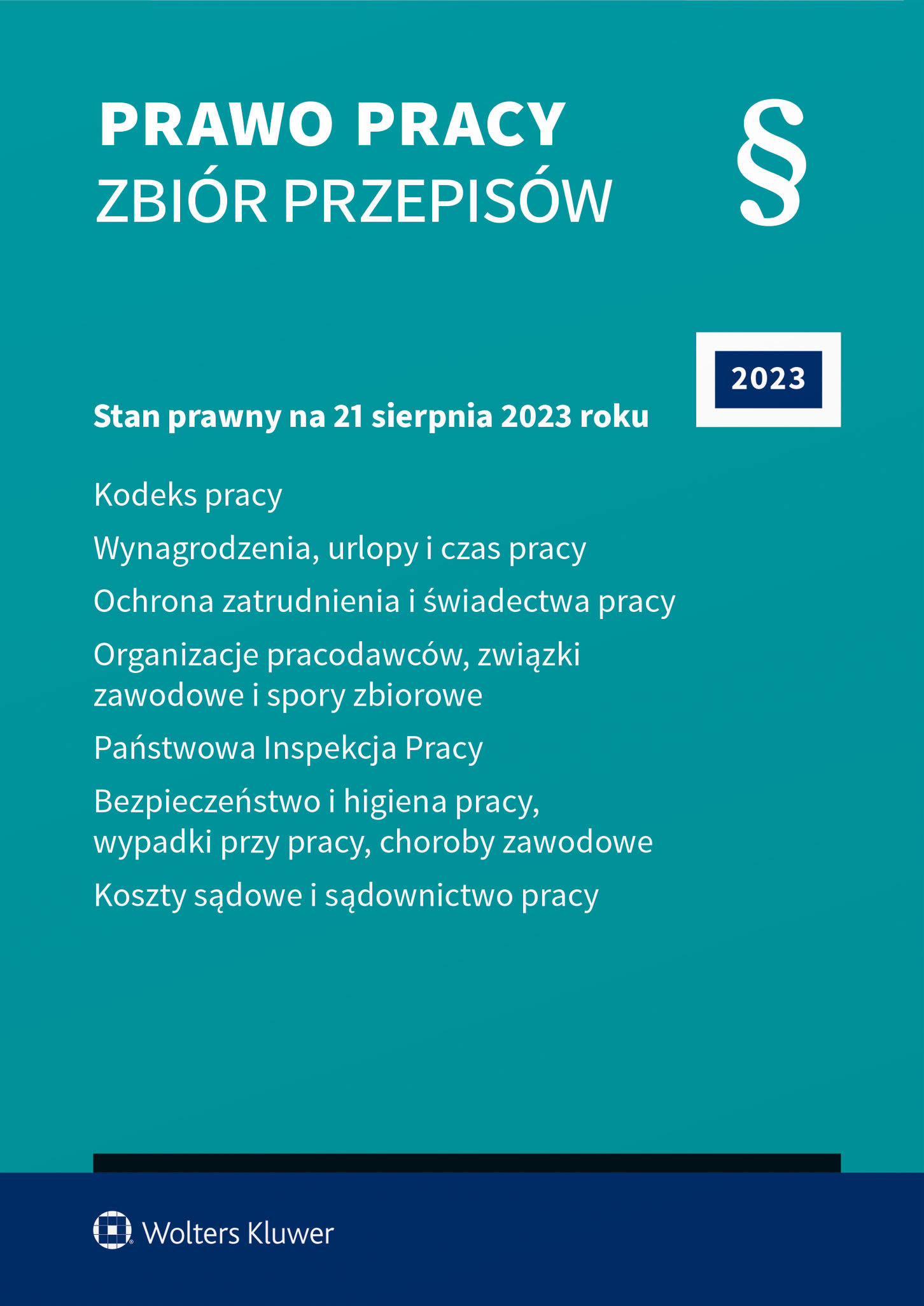 Uwzględnia zmiany wchodzące w życie z dniem: KODEKS PRACY: 7 kwietnia 2023 r. - ustawa z 1 grudnia 2022 r. o zmianie ustawy - Kodeks pracy oraz niektórych innych ustaw (Dz.U. z 2023 r. poz. 240) 26 kwietnia 2023 r. - ustawa z 9 marca 2023 r. o zmianie ustawy - Kodeks pracy oraz niektórych innych ustaw (Dz.U. poz. 641) USTAWA O ŚWIADCZENIACH PIENIĘŻNYCH Z UBEZPIECZENIA SPOŁECZNEGO W RAZIE CHOROBY I MACIERZYŃSTWA: 26 kwietnia 2023 r. - ustawa z 9 marca 2023 r. o zmianie ustawy - Kodeks pracy oraz niektórych innych ustaw (Dz.U. poz. 641) USTAWA O DODATKOWYM WYNAGRODZENIU ROCZNYM DLA PRACOWNIKÓW JEDNOSTEK SFERY BUDŻETOWEJ: 26 kwietnia 2023 r. - ustawa z 9 marca 2023 r. o zmianie ustawy - Kodeks pracy oraz niektórych innych ustaw (Dz.U. poz. 641) ROZPORZĄDZENIE W SPRAWIE WNIOSKÓW DOTYCZĄCYCH UPRAWNIEŃ PRACOWNIKÓW ZWIĄZANYCH Z RODZICIELSTWEM ORAZ DOKUMENTÓW DOŁĄCZANYCH DO TAKICH WNIOSKÓW: 19 maja 2023 r. - rozporządzenie Ministra Rodziny i Polityki Społecznej z 8 maja 2023 r. w sprawie wniosków dotyczących uprawnień pracowników związanych z rodzicielstwem oraz dokumentów dołączanych do takich wniosków (Dz.U. poz. 937) USTAWA O SZCZEGÓLNYCH ZASADACH ROZWIĄZYWANIA Z PRACOWNIKAMI STOSUNKÓW PRACY Z PRZYCZYN NIEDOTYCZĄCYCH PRACOWNIKÓW: 26 kwietnia 2023 r. - ustawa z 9 marca 2023 r. o zmianie ustawy - Kodeks pracy oraz niektórych innych ustaw (Dz.U. poz. 641) USTAWA O OCHRONIE ROSZCZEŃ PRACOWNICZYCH W RAZIE NIEWYPŁACALNOŚCI PRACODAWCY: 22 maja 2023 r. - ustawa z 26 stycznia 2023 r. o fundacji rodzinnej (Dz.U. poz. 326) 12 czerwca 2023 r. - obwieszczenie Marszałka Sejmu Rzeczypospolitej Polskiej z 17 kwietnia 2023 r. w sprawie ogłoszenia jednolitego tekstu ustawy o ochronie roszczeń pracowniczych w razie niewypłacalności pracodawcy (Dz.U. poz. 1087) USTAWA O REHABILITACJI ZAWODOWEJ I SPOŁECZNEJ ORAZ ZATRUDNIANIU OSÓB NIEPEŁNOSPRAWNYCH: 7 kwietnia 2023 r. - ustawa z 1 grudnia 2022 r. o zmianie ustawy - Kodeks pracy oraz niektórych innych ustaw (Dz.U. z 2023 r. poz. 240) 6 maja 2023 r. - ustawa z 9 marca 2023 r. o zmianie ustawy o ochronie konkurencji i konsumentów oraz niektórych innych ustaw (Dz.U. poz. 852) USTAWA O ZAKŁADOWYM FUNDUSZU ŚWIADCZEŃ SOCJALNYCH: 24 maja 2023 r. - obwieszczenie Marszałka Sejmu Rzeczypospolitej Polskiej z 11 maja 2023 r. w sprawie ogłoszenia jednolitego tekstu ustawy o zakładowym funduszu świadczeń socjalnych (Dz.U. poz. 998) ROZPORZĄDZENIE W SPRAWIE DOKUMENTACJI PRACOWNICZEJ: 23 maja 2023 r. - rozporządzenie Ministra Rodziny i Polityki Społecznej z 11 maja 2023 r. zmieniające rozporządzenie w sprawie świadectwa pracy (Dz.U. poz. 912) ROZPORZĄDZENIE W SPRAWIE DOKUMENTACJI PRACOWNICZEJ: 7 kwietnia 2023 r. - rozporządzenie Ministra Rodziny i Polityki Społecznej z 6 marca 2023 r. zmieniające rozporządzenie w sprawie dokumentacji pracowniczej (Dz.U. poz. 471) 17 maja 2023 r. - rozporządzenie Ministra Rodziny i Polityki Społecznej z 9 maja 2023 r. zmieniające rozporządzenie w sprawie dokumentacji pracowniczej (Dz.U. poz. 879) USTAWA O KOSZTACH SĄDOWYCH W SPRAWACH CYWILNYCH: 22 maja 2023 r. - ustawa z 26 stycznia 2023 r. o fundacji rodzinnej (Dz.U. poz. 326) 20 czerwca 2023 r. - obwieszczenie Marszałka Sejmu Rzeczypospolitej Polskiej z 25 maja 2023 r. w sprawie ogłoszenia jednolitego tekstu ustawy o kosztach sądowych w sprawach cywilnych (Dz.U. poz. 1144) 1 lipca 2023 r. - ustawa z 9 marca 2023 r. o zmianie ustawy - Kodeks postępowania cywilnego oraz niektórych innych ustaw (Dz.U. poz. 614) 15 sierpnia 2023 r. - ustawa z 13 stycznia 2023 r. o zmianie ustawy - Kodeks postępowania cywilnego oraz niektórych innych ustaw (Dz.U. poz. 289 ze zm.)