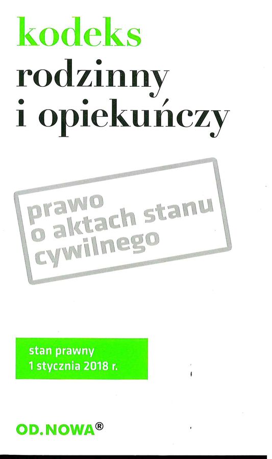 Prawo o aktach stanu cywilnego oraz skorowidz przedmiotowy KRO. Poprzez system przypisów publikacja umożliwia studentom i praktykom łatwe śledzenie zmian prawnych. Zaletą książki jest jej praktyczny, poręczny format, przejrzysty układ graficzny i niska cena. Łatwą orientację w materiale umożliwia obszerny skorowidz. Przepisy wchodzące w życie później niż podany stan prawny aktu prawnego ale już ogłoszone w Dzienniku Ustaw podajemy w ramkach z zachowaniem przepisu w dotychczas obowiązującym brzmieniu. Publikacja wskaże Ci m.in.: – prawa i obowiązki małżonków – małżeńskie ustroje majątkowe – ustanie małżeństwa, separację – przepisy dotyczące pokrewieństwa i powinowactwa, w tym m.in. władza rodzicielska, przysposobienie, obowiązek alimentacyjny, piecza zastępcza – przepisy dotyczące opieki i kurateli Szczególnie pomocna dla: – studentów i wykładowców – osób przygotowujących się do egzaminów – aplikantów – osób ceniących sobie poręczny format, niewielkie gabaryty książki oraz przystępną cenę