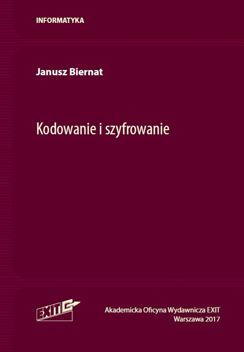SPIS TREŚCI Wykaz oznaczeń i akronimów 1. Poufność i niezawodność 2. Informacja i kodowanie 2.1. Informacja i entropia 2.2. Kompresja informacji 2.3. Niezawodność i bezpieczeństwo 2.4. Poufność - ochrona treści informacji 3. Algebra kodowania 3.1. Relacje, działania, funkcje 3.2. Elementy teorii liczb 3.3. Grupy, pierścienie, ciała 3.4. Macierze i wyznaczniki 3.5. Przestrzenie wektorowe 3.6. Pierścień wielomianów 4. Ciała skończone 4.1. Wielomiany pierwotne 4.2. Logarytm Zecha 4.3. Układowa realizacja działań w GF(p) 4.4. Mnożenie wielomianów nad GF(p) 4.5. Dzielenie wielomianów nad GF(p) 4.6. Zależności rekurencyjne 5. Kody nadmiarowe 5.1. Kody detekcyjne i korekcyjne 5.2. Kody korekcyjne systematyczne 5.3. Kody splotowe 6. Kody liniowe 6.1. Macierze kodu liniowego 6.2. Warunki istnienia kodów liniowych 6.3. Wielomian kodu i przekształcenia liniowe 6.4. Modyfikacje kodów liniowych 7. Kody cykliczne 7.1. Generator kodu cyklicznego 7.2. Macierze kodu cyklicznego 7.3. Kody Bose-Chaudhuri-Hocquenghema 7.4. Kody Hamminga jako kody cykliczne 7.5. Kody korygujące wiązki błędów 7.6. Kodowanie kodu cyklicznego 7.7. Korekcja błędów w kodzie cyklicznym 7.8. Kody detekcyjne 8. Kodz Reeda-Solomona 8.1. Generowanie kodu Reeda-Solomona 8.2. Dekodowanie i korekcja błędów 8.3. Dekodowanie iteracyjne 8.4. Zastosowanie algorytmu Euklidesa 8.5. Dekoder kodu Reeda-Solomona 8.6. Opis transformatowy kodu RS 9. Kody splotowe 9.1. Wielomian kodu splotowego 9.2. Graf kratowy 9.3. Algorytm Viterbiego 9.4. Kody turbo 10. Podstawy kryptografii 10.1. Kryptografia symetryczna 10.2. Kryptografia asymetryczna 10.3. Weryfikacja partnerów 10.4. Bezpieczna komunikacja Literatura Słownik polsko-angielski ważniejszych terminów Indeks