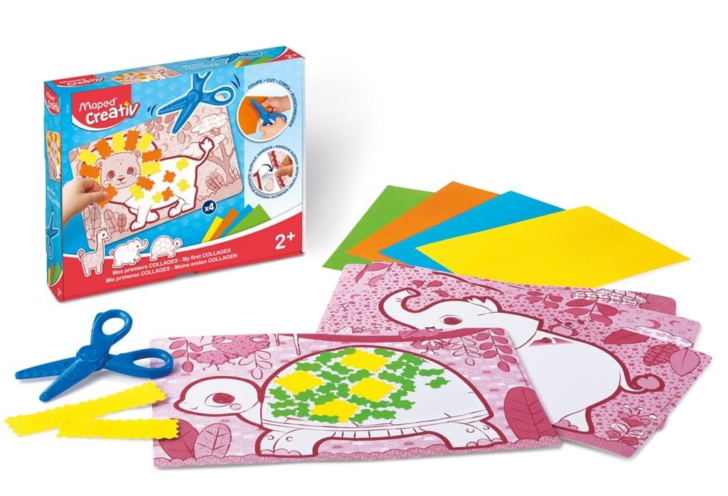Pierwszy kolaż w zasięgu ręki. Zwierzątka umieszczone na kartach z klejącą powierzchnią tylko czekają, aż ktoś je przyozdobi przy użyciu różnokolorowych papierów powycinanych ząbkowanymi nożyczkami. To możesz być Ty! Z łatwością sprawisz, że będą wyglądały niesamowicie!