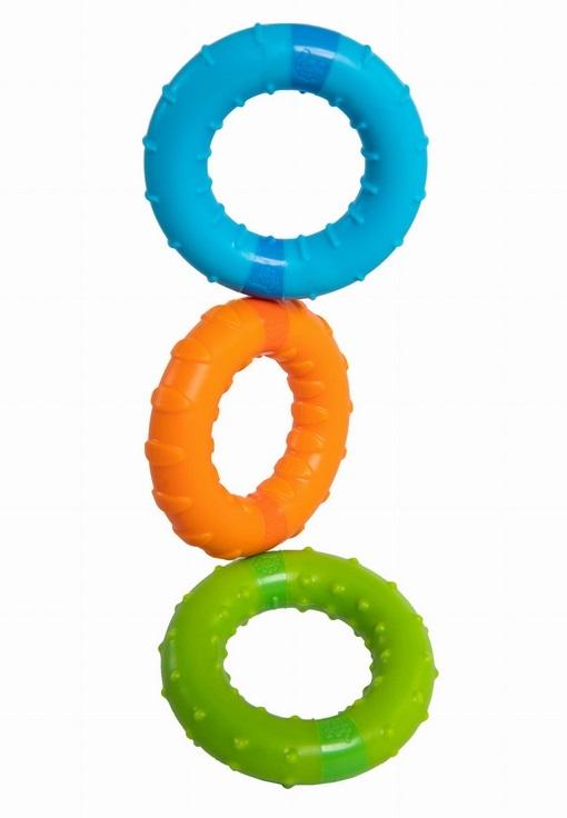 Układaj, łącz, turlaj, grzechocz i odkrywaj. Trzy magnetyczne kółeczka, które łączą się ze sobą, z każdej strony. Każde kółeczko ma gumową powierzchnię, różną fakturę oraz wbudowaną grzechotkę. Genialnie prosta, niesamowicie wciągająca zabawa, nie tylko dla małego dziecka.