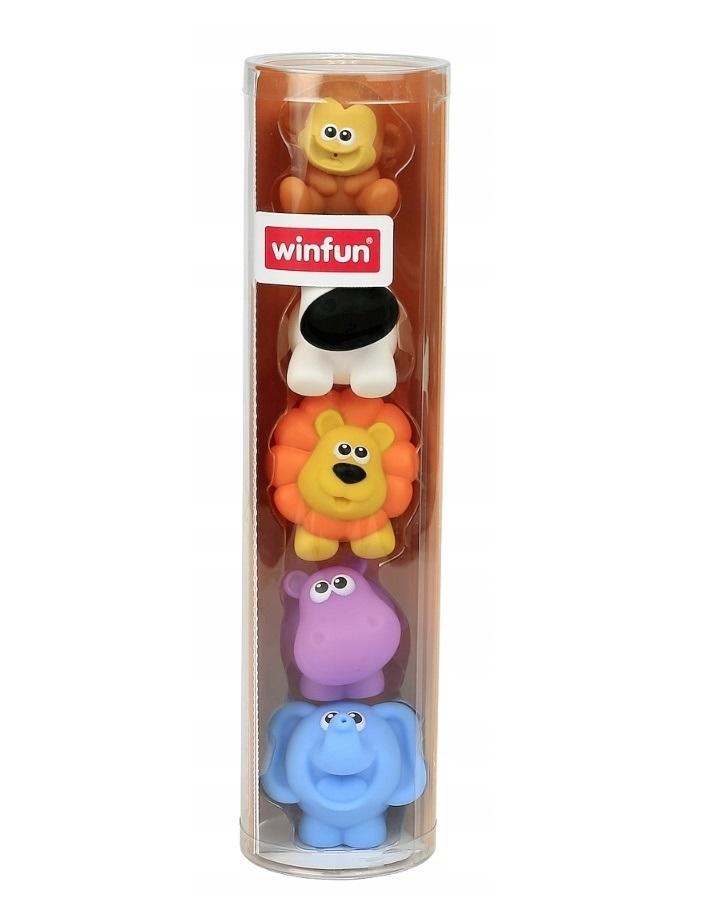 - 5 sympatycznych zwierzątek z dżungli: lew, hipopotam, małpka, zebra i słonik.