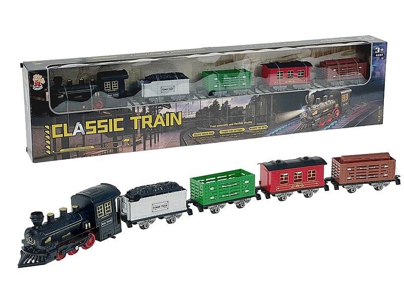 kolejka na baterie, 12 części, 4 wagoniki, światło, dźwięk, funkcja dymu, tor owalny 140x92cm; W/B