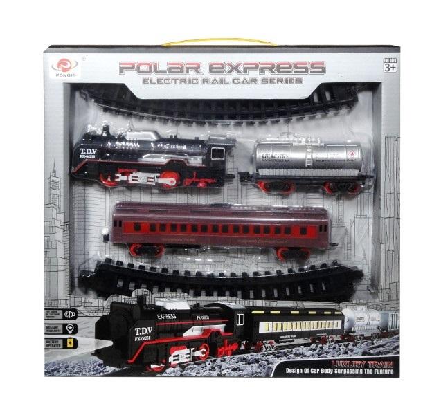 Plastikowa kolejka z 2 wagonami wraz z torami. Zabawka podczas jazdy wydaje dźwięki, a także świeci Zabawka działa na baterie typu AA. Baterie nie są załączone do zabawki. Produkt zapakowany w kartonowe opakowanie z okienkiem. Podane wymiary są wymiarami opakowania. Zabawka dla dzieci od 3 lat.