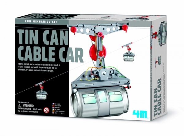 Wykorzystaj puszkę po napoju do stworzenia unikalnej kolejki linowej. Zainstaluj kolejkę w swoim pokoju i obserwuj jak przemieszcza się w górę i w dół, od jednego punktu do drugiego. Teraz możesz stworzyć własną kolejkę linową, z wagonikiem lub gondolą dla narciarzy, na wzór prawdziwej kolei linowej, jaką można wjechać na Kasprowy Wierch. ZAWARTOŚĆ: część jezdna wał cofania 2 odbojniki (4 części) duże koło pasowe średnie koło pasowe osłona silnika duża blokada koła koło pasowe silnika pokrywa silnika silnik 2 boczne blokady koła 2 boczne koła obrotowa zatyczka łącząca 4 zatyczki do przewodów 4 śruby oś puszki osłona baterii linka 2 opaski elastyczne naklejki na puszkę Do prawidłowego funkcjonowania kolejki potrzebne są 2 baterie AA 1,5 V. Potrzebny będzie również mały śrubokręt krzyżakowy i aluminiowa puszka po napoju. Dla dzieci powyżej 8. roku życia.