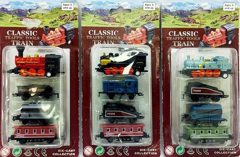 Opakowanie Kolejka metalowa z lokomotywą w 3 wagonami MIX