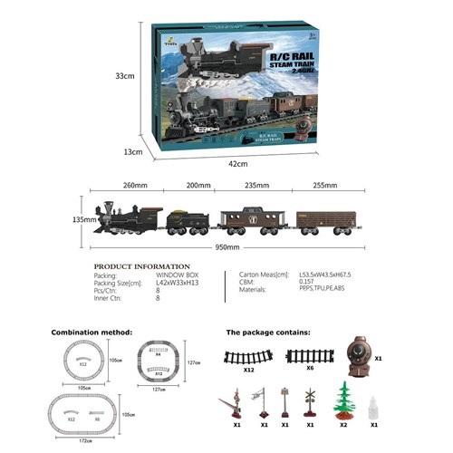 Kolejka RC to świetny wybór dla wszystkich, którzy chcą czerpać maksimum przyjemności z zabawy. Ergonomiczny i niezwykle prosty w obsłudze pilot, pozwala w pełni zapanować nad lokomotywą, dostarczając przy tym sporo wrażeń i dobrej zabawy. Nadajnik z funkcją antyzakłóceniową, działający na częstotliwości 2.4 GHz, całkowicie zmieni charakter zabawy i przeniesie Cię w nowy, lepszy wymiar przygody z zabawkami zdalnie sterowanymi. Za pomocą pilota możemy uruchomić lokomotywę, sterować jazdą w przód oraz tył a także włączać dźwięki i opcje pary. Zestaw kolejek FENFA został wykonany z wyjątkową dbałością o najdrobniejsze detale, wyraźnie widać nity, orurowanie i inne elementy, wyglądające dokładnie tak, jak w autentycznej kolejce. Precyzyjnie odwzorowany wygląd lokomotywy, wagoników i pozostałych elementów, a także atrakcyjna kolorystyka, przyciągną uwagę każdego dziecka, zapewniając mu długie godziny fascynujących zabaw, które: pobudzają kreatywność i wyobraźnię, rozwijają zdolności manualne, pozwalają miło i mądrze spędzić czas.