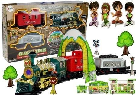 Rodzinna Kolejka Pociąg Tor 480 cm Dźwięk, Światła U wielu osób określenie "prezenty pod choinkę" automatycznie wywołuje wspomnienie ze świątecznych filmów familijnych, w których rodzina wspólnie ogląda kolejkę jeżdżącą po własnoręcznie złożonym przed momentem torze. Teraz oferujemy tor o długości 480 cm ! Piękna lokomotywa i miasto oddadzą realizmu zabawie. Stwórz własne miasteczko przez które przejeżdża Twoja kolejka. Kolejka ma możliwość jazdy w przód i tył. Dodatkowe efekty dźwiękowe jakby jechał prawdziwy pociąg, przednie światło sprawią nie lada frajdę. I twój maluch poczuje się jak maszynista. Już samo zbudowanie toru będzie wyzwaniem, ponieważ wymaga to precyzji, zdolności manualnych i wyobraźni jak połączyć te elementy. Zestaw składa się z 25 elementów. Elementy zestawu: - lokomotywa - wagon z węglem - czerwony wagon - 8 prostych szyn - 12 półokrągłych szyn - 4 postacie - makieta dworca, sklepu , hotelu - tunel - drzewa, elementy przyrody - znaki drogowe Wszystkie dodatki wykonane są z kartonu. Wymiary wagoników: 25 cm x 11 cm x 11 cm Wymiary kolejki: 30 cm x 11 cm x 18 cm Wymiary opakowania: 66 cm x 40 cm x 13,5 cm Zabawka zasilana jest czterema bateriami AA 1,5V, wejście na baterie znajduję się na dole kolejki. Zabawka zgodna z normą EN71.
