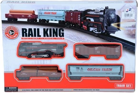 Rozbudź wyobraźnię swojego dziecka dzięki zestawowi pociągów Rail King. Ten inteligentny klasyczny pociąg to idealna zabawka dla małych miłośników kolei od 5. roku życia. Zestaw charakteryzuje się realistycznym odwzorowaniem detali i posiada funkcję oświetlenia, która dodaje zabawie autentyczności i magii. W komplecie znajduje się stylowa lokomotywa parowa oraz trzy różnorodne wagony: wagon towarowy typu węglarka z węglem, wagon cysterna oznaczony jako "Oilcan Train" oraz wagon platforma z ładunkiem drewna. Wszystkie elementy zostały starannie wykonane, by zapewnić trwałość i bezpieczeństwo podczas długich godzin zabawy. Zestaw kolejowy Rail King to nie tylko świetna rozrywka, ale także doskonały sposób na rozwijanie zdolności manualnych i wyobraźni przestrzennej u dziecka. Idealny prezent, który zachęca do kreatywnej i wciągającej zabawy.