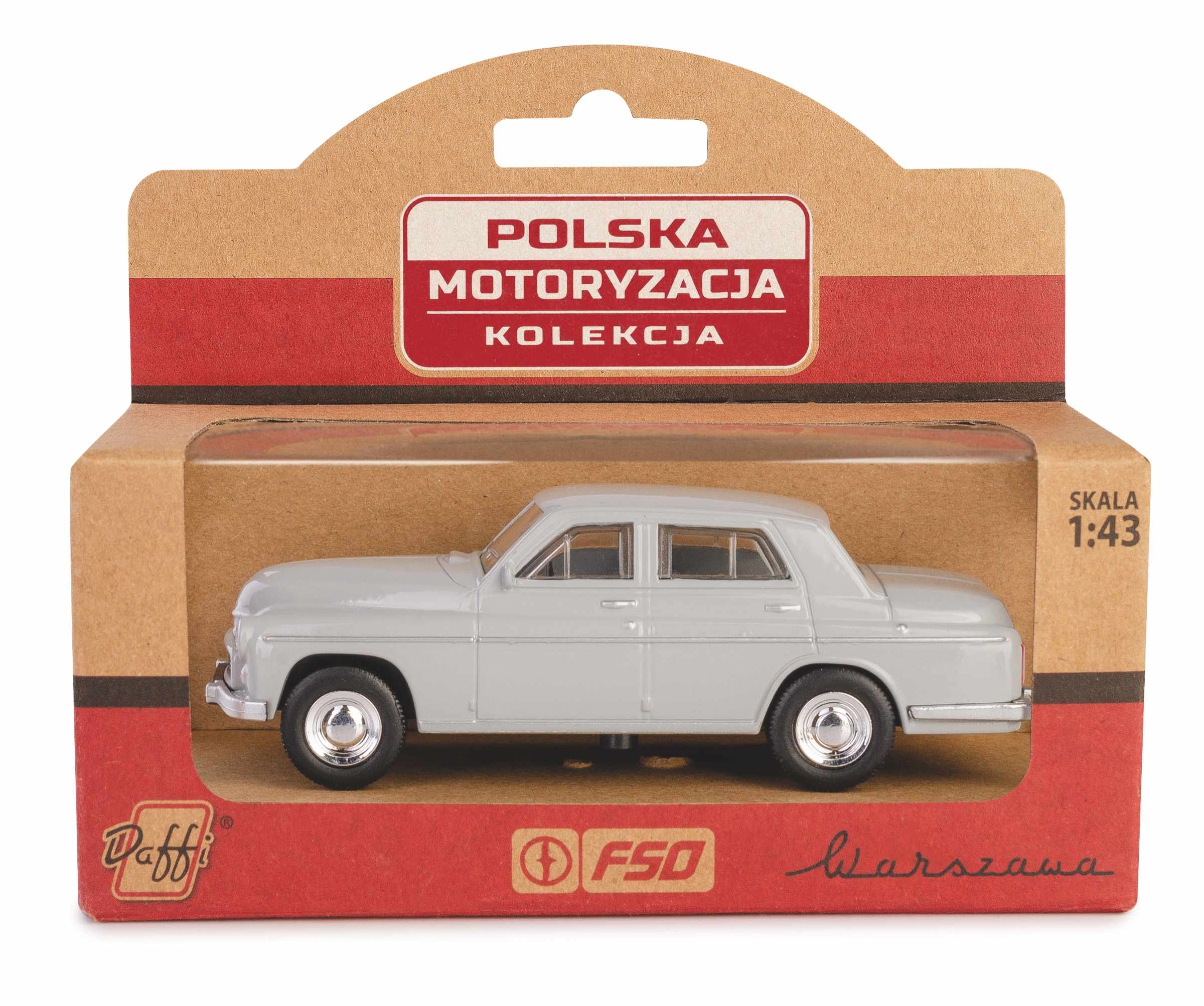 WARSZAWA 223 POPIELATA W 1961 roku skonstruowano trzy prototypy Warszawy z nadwoziem typu sedan. Zmiany w stosunku do poprzednich wersji ograniczone zostały do tylnej części nadwozia oraz konstrukcji dachu. Dwie kanapy pokryte skajem i tkaniną zapewniały wysoki komfort podróży, ich wyściółkę stanowiła sprasowana trawa morska i sprężyny. Od 1970 roku montowano czterobiegową w pełni zsynchronizowaną ręczną skrzynię biegów z dźwignią zamontowaną w podłodze. Tak wyposażone egzemplarze trafiały głównie na eksport (rynek kolumbijski). Początkowo model ten był oznaczony liczbą 203, jednak po proteście firmy Peugeot (miała zastrzeżone dla oznaczeń swoich aut trzycyfrowe liczby z zerem pośrodku) zmieniono na 223. Licencja FSO Model metalowy z elementami plastikowymi. Produkt niezalecany dla dzieci poniżej 3 lat.