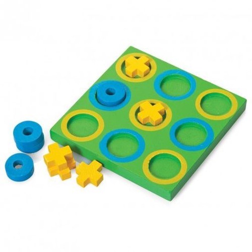 Zabawka została wykonana w całości z wysokiej jakości drewna. Na zestaw składa się drewniana plansza o boku 9cm wraz z 4 klockami prezentującymi kółka oraz 5 prezentującymi krzyżyki. Na planszy znajduje się 9 otworów, w których należy umieszczać klocki, aby doprowadzić do ułożenia linii z trzech takich samych znaków. Zabawka przeznaczona jest do gry dla dwóch osób. Została solidnie wykonana i estetycznie pomalowana. Całe opakowanie zawiera 18 pełnych zestawów.