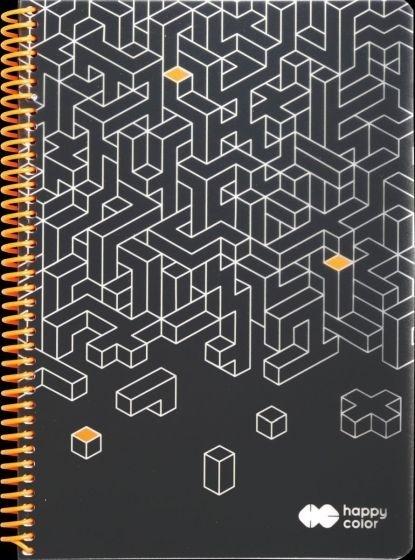 Design kolekcji Just, utrzymany w kolorystyce minimalistycznej, czarno-białej oraz z delikatnymi elementami pomarańczowymi. Sztywna okładka PP. Spirala dopasowana kolorystycznie do designu okładki. Biały papier 80g w szarą kratkę. 80 kartek.
