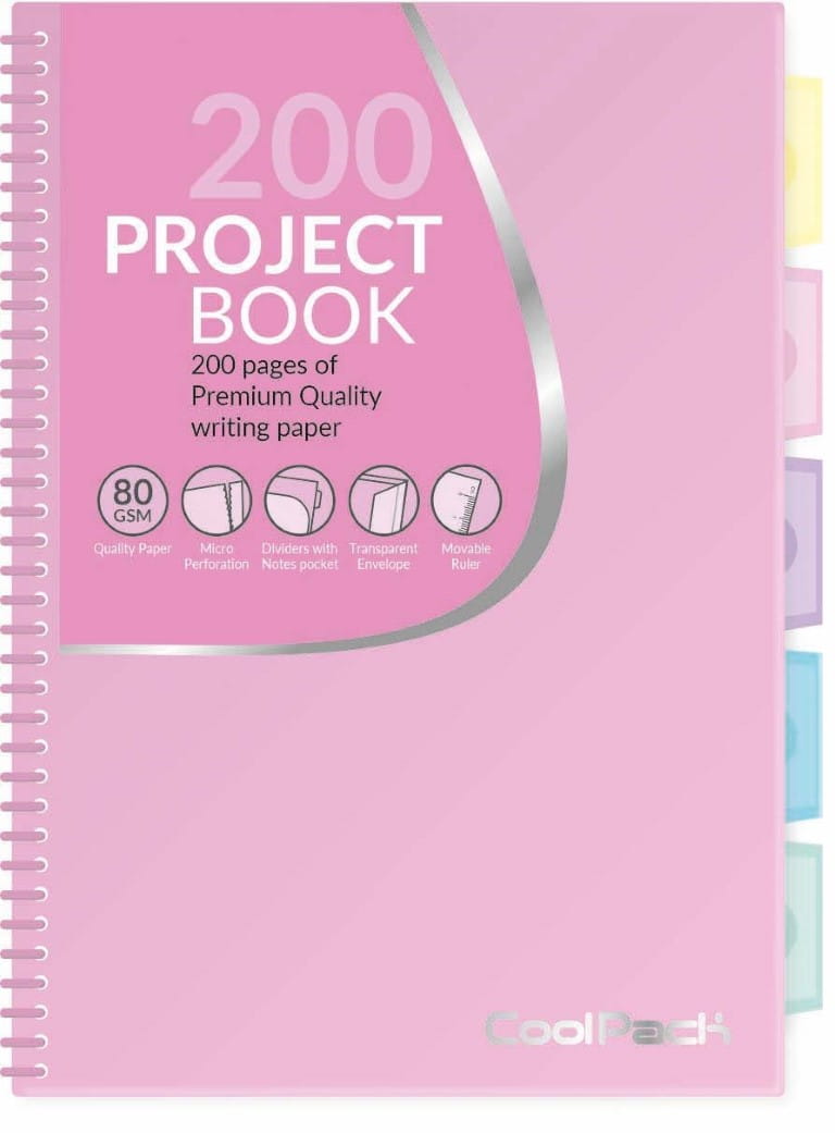 Wysokiej jakości zeszyt w kratkę A4 marki Coolpack. Zeszyt posiada transparentną kopertę, linijkę oraz pięć przekładek, dzięki którym notatki zawsze będą uporządkowane.