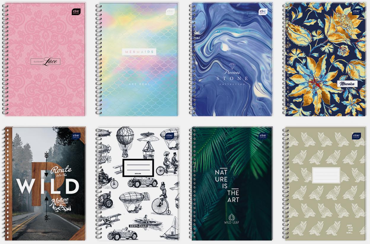 Kołobrulion B5, 160 kartek z kolorowymi marginesami. 3 sztuki w opakowaniu zbiorczym, mix wzorów. Producent Interdruk.