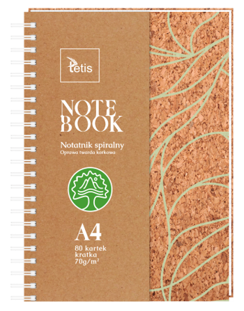 Kołonotatnik w twardej korkowej oprawie. Gramatura papieru:70g/m2