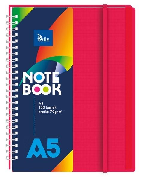 Kołonotatnik A5/100K kratka PP czerwony