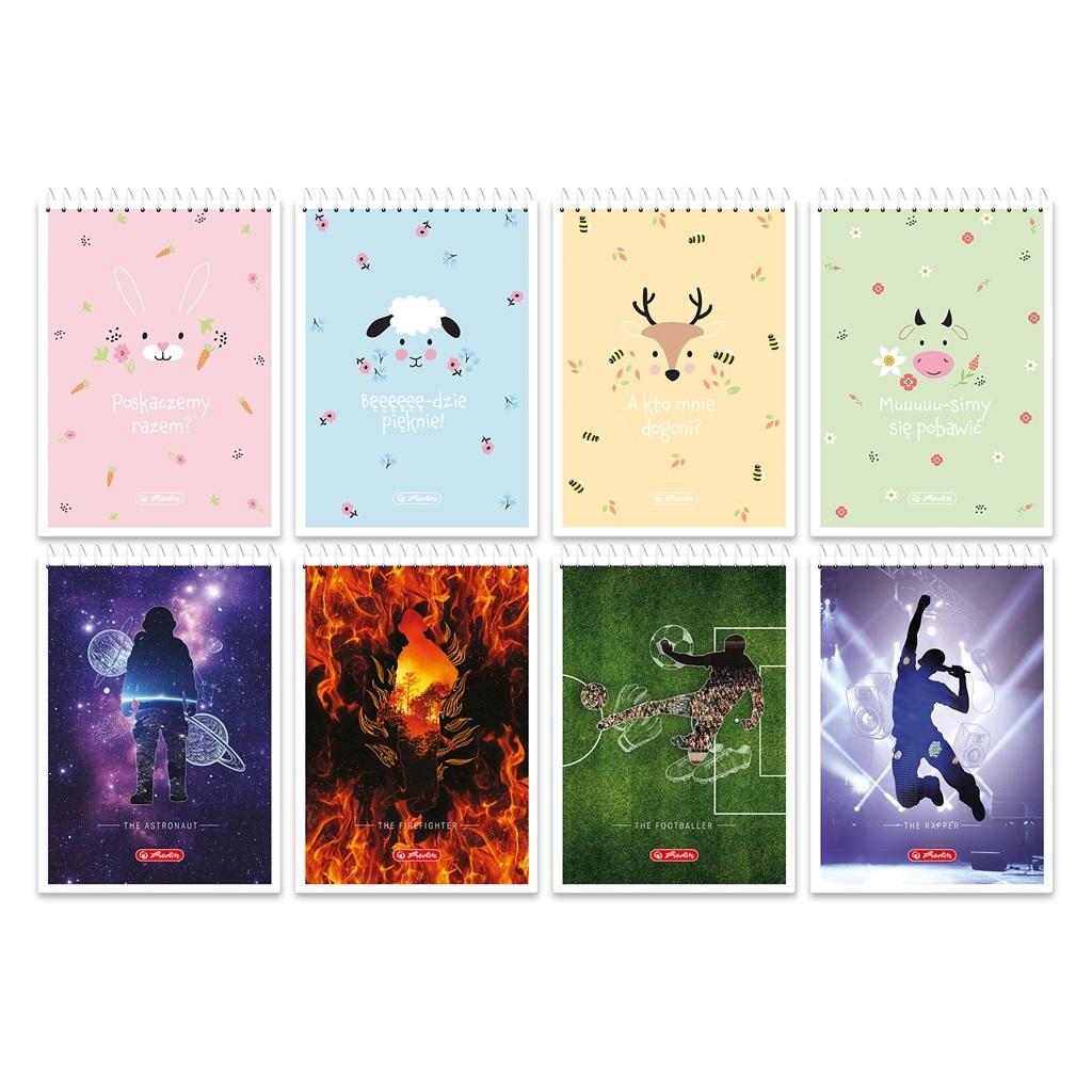 Kołonotatnik A6/40K kratka. Opakowanie zbiorcze 20 sztuk. Mix wzorów w opakowaniu.