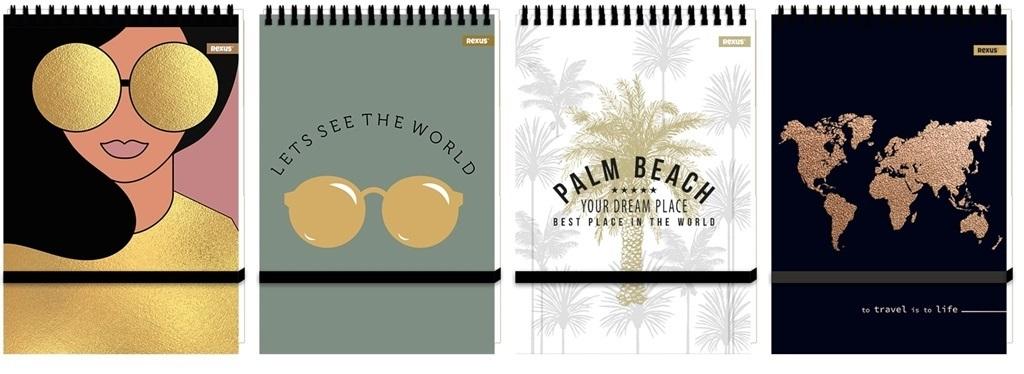 Kołonotes A6, posiada 96 kartek o gramaturze 70 g/m2 w kratkę. Charakteryzuje się estetycznym wykończeniem, modną grafiką Flower na okładce i czarną spiralą. Zamykany na gumkę. Miękka oprawa. Dostępne 4 wzory.