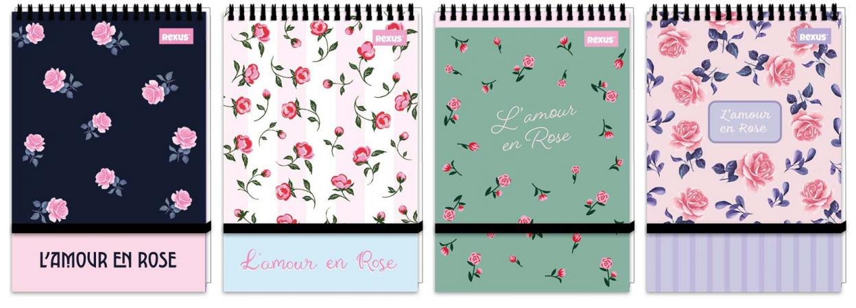 Fascynujący design - Okładka każdego notatnika ozdobiona jest modną grafiką z serii Flower, co nadaje mu unikalnego charakteru. Czarna spirala dodaje notatnikom eleganckiego wykończenia.