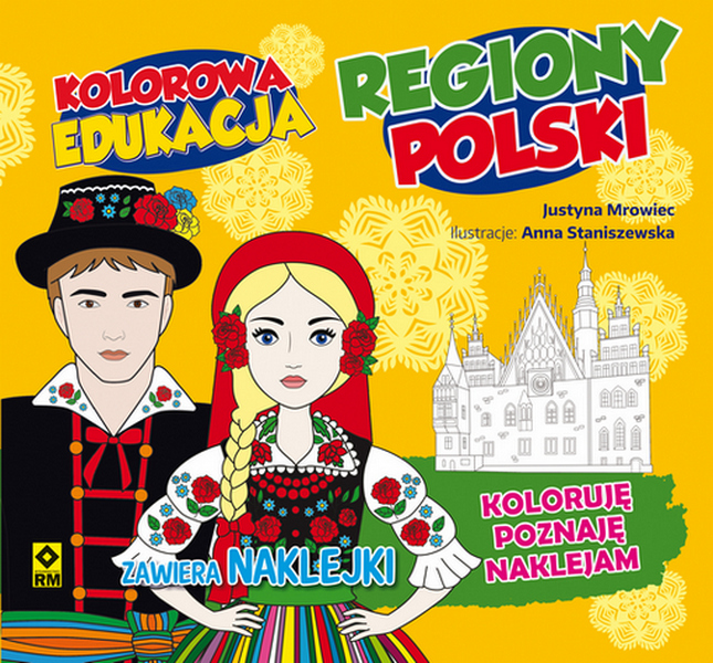 KOLOROWA EDUKACJA to seria kolorowanek, dzięki której twoje dziecko • rozbudzi swoją wrażliwość artystyczną, • dowie się wiele o Polsce i o świecie, • rozwinie spostrzegawczość i koncentrację, • zdobędzie umiejętność samodzielnej pracy, • będzie się świetnie bawić, • a może nawet... zaprosi cię do wspólnego odkrywania kolorowego świata! Z ciekawych opowiastek o regionach administracyjnych i etnograficznych Polski twój mały odkrywca dowie się między innymi, jak się witamy po kaszubsku, a jak po góralsku, co je się na Kujawach i czym zdobi się chaty kurpiowskie. Kolorowe naklejki natomiast ułatwiają rozpoznanie poszczególnych regionów.